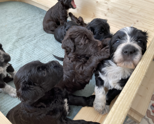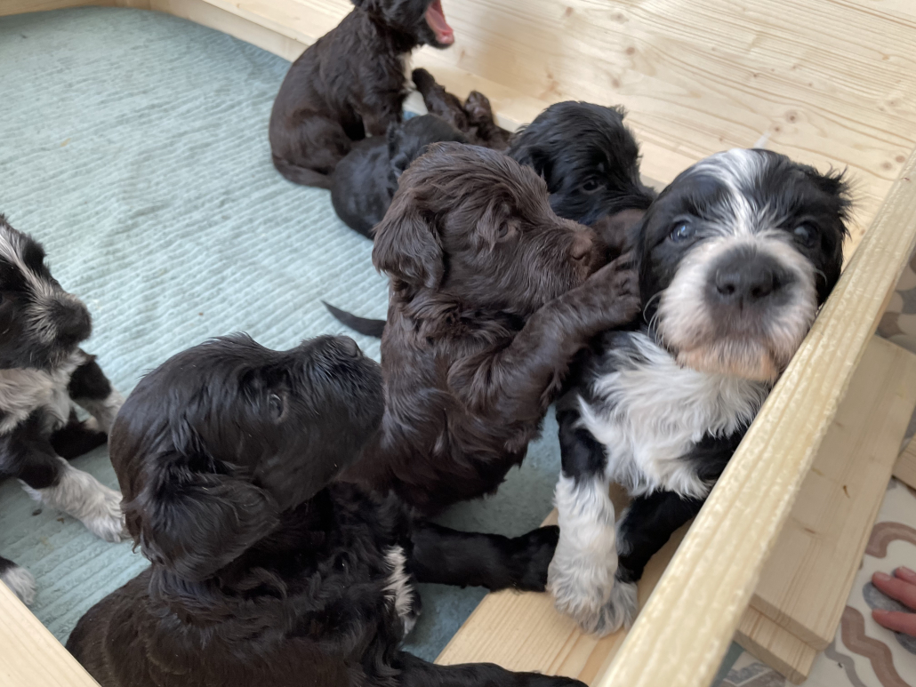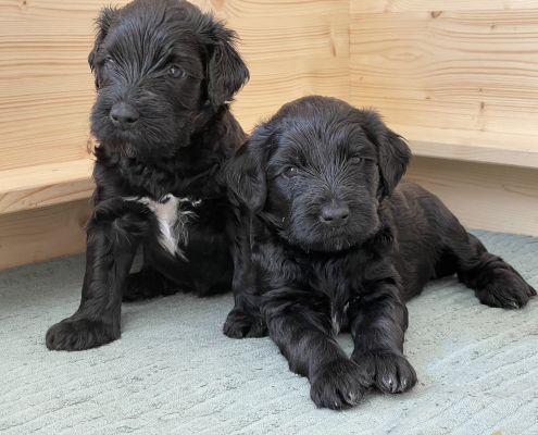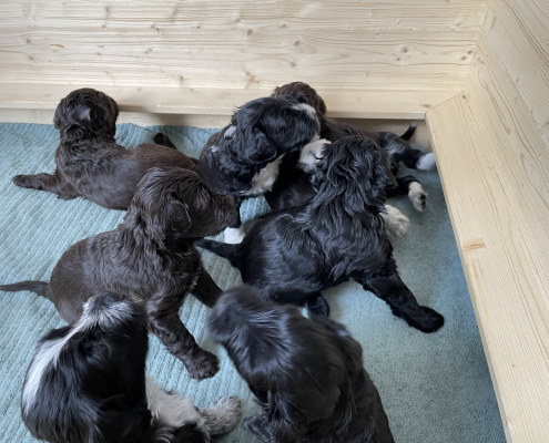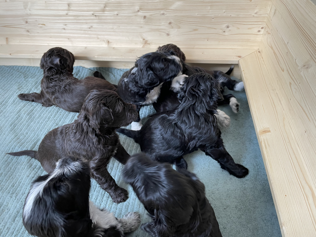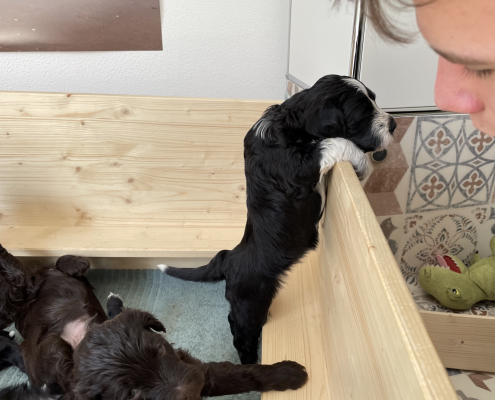 Zum Schlafen legen sie sich in der Regel in die Kiste. Sobald aber jemand kommt sind sie hellwach und laufen aufgeregt auf einen zu – wirklich zuckersüß (bis der erste unerwartete Biss in den gr0ßen Zeh einen doch zusammenzucken lässt).