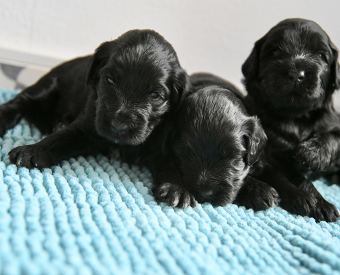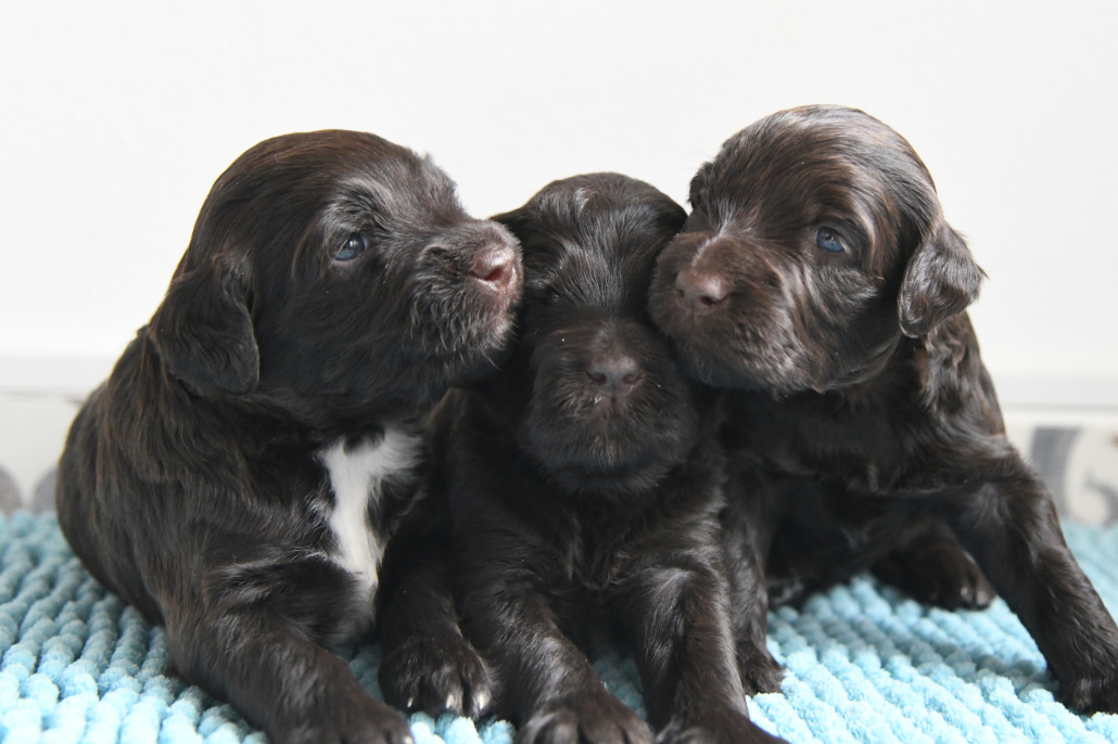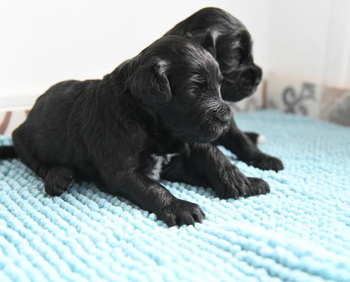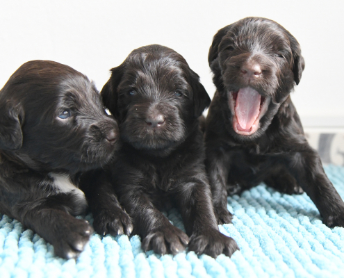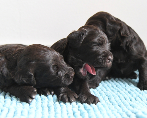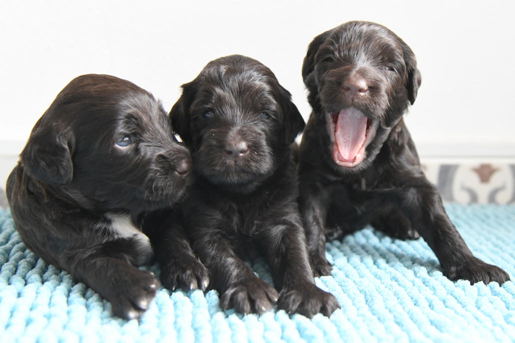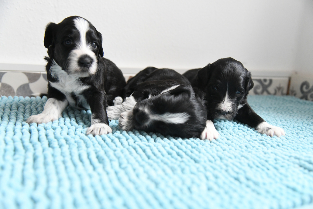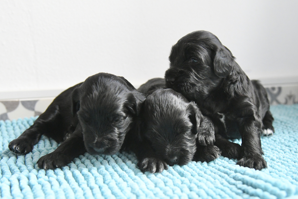 Bei Einigen leuchten die Augen blau, dies bedeutet aber leider nicht, dass das so bleibt. Unseren Züchter aus Portugal meint, dass man aktuell nur die Aussage machen kann, dass es wohl keine schwarzen werden, sondern eher bernsteinfarben.