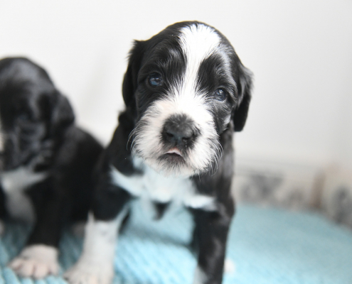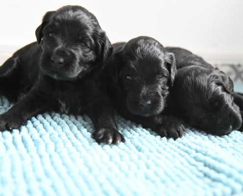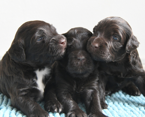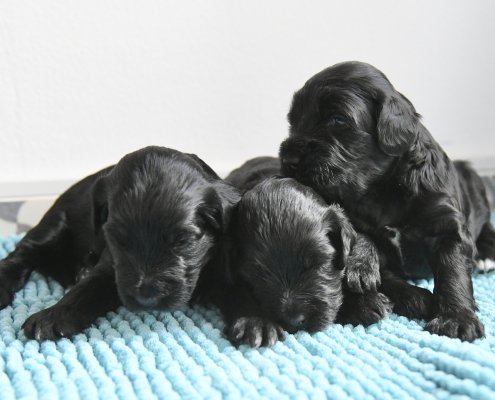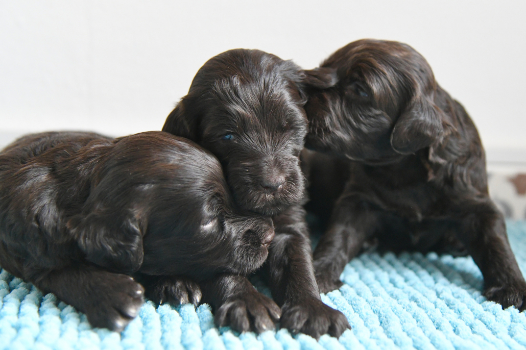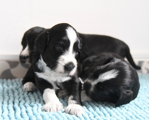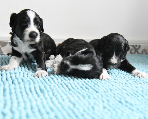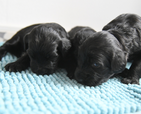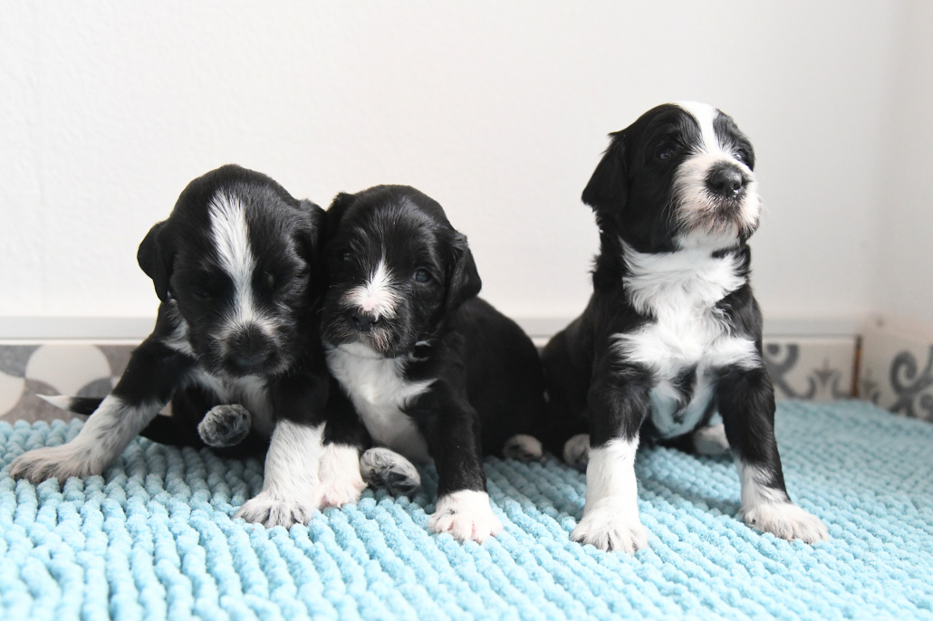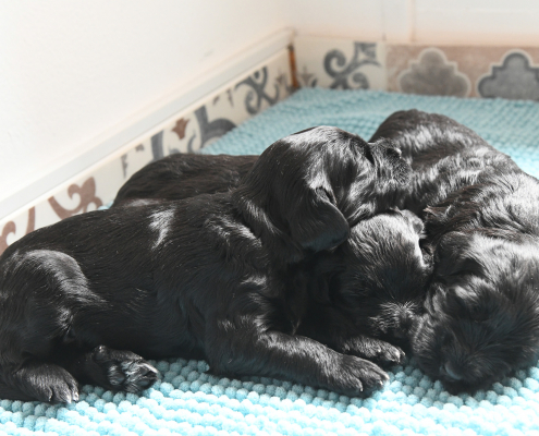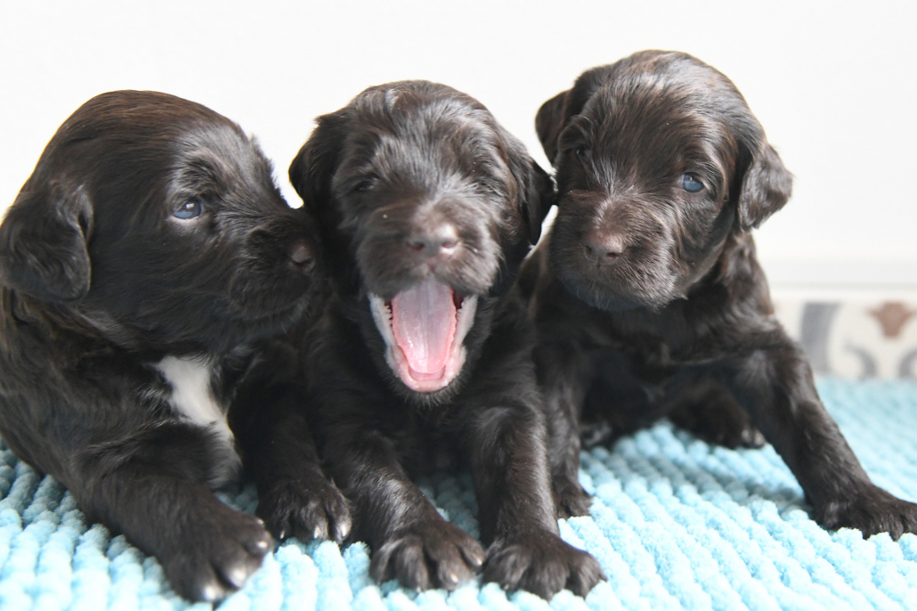 Bei Einigen leuchten die Augen blau, dies bedeutet aber leider nicht, dass das so bleibt. Unseren Züchter aus Portugal meint, dass man aktuell nur die Aussage machen kann, dass es wohl keine schwarzen werden, sondern eher bernsteinfarben.