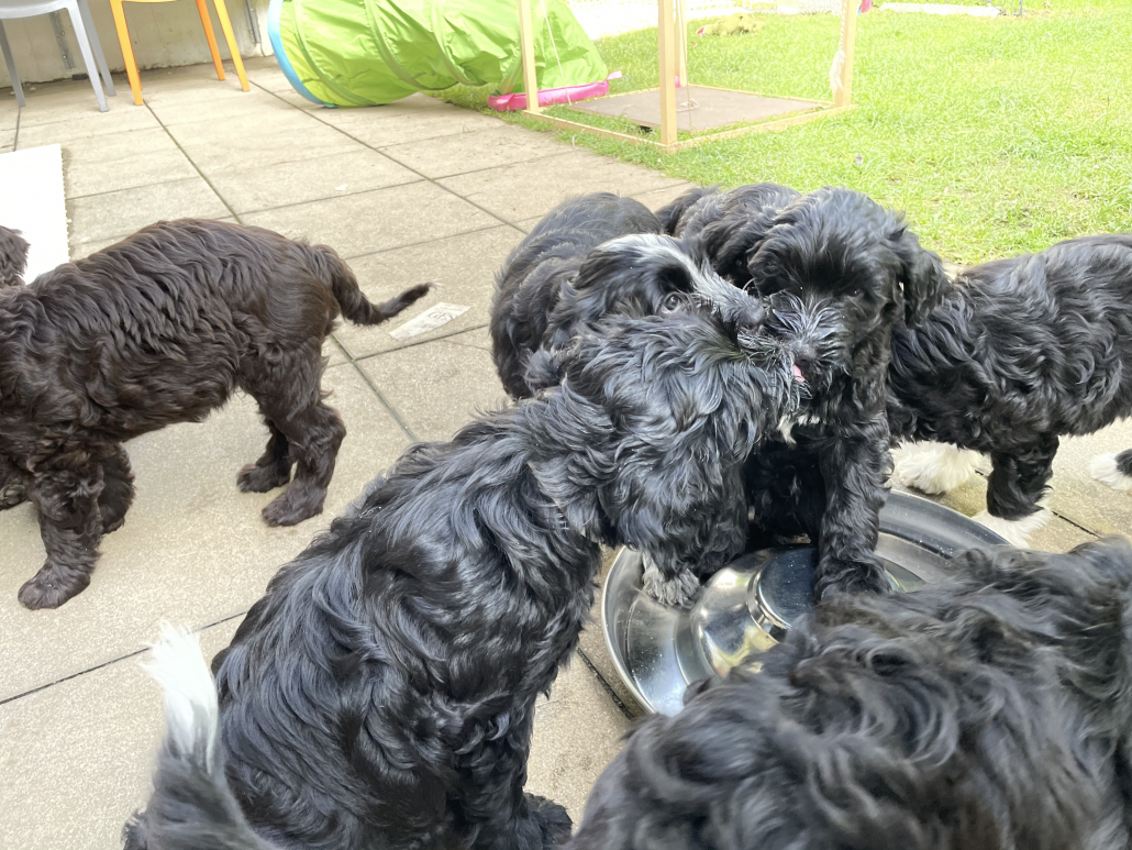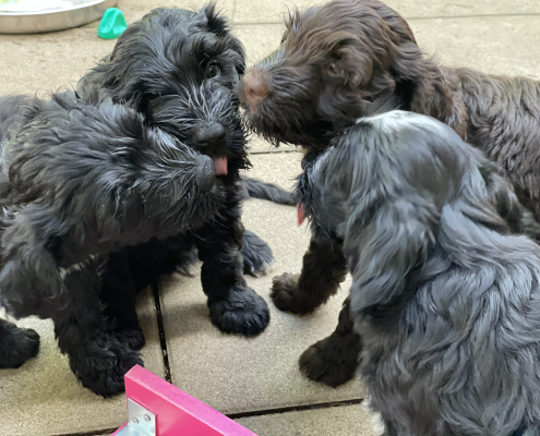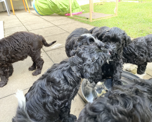 Die Zeit rast dahin und wir bereiten die ersten „Welpenabgaben“ vor. Deswegen kam ich auch nicht mehr dazu weiter zu schreiben und Filmchen/Fotos einzustellen.