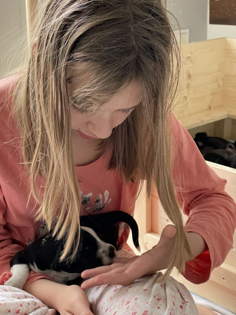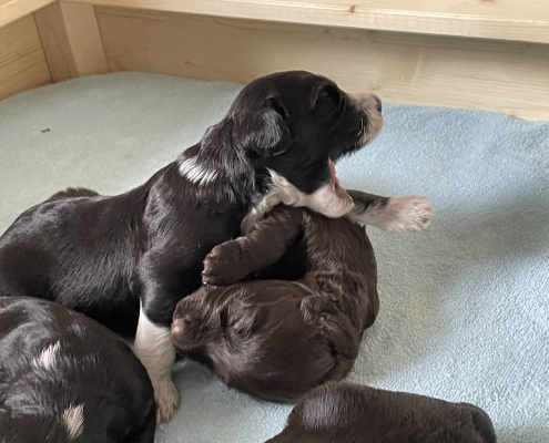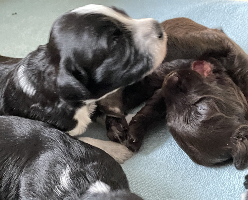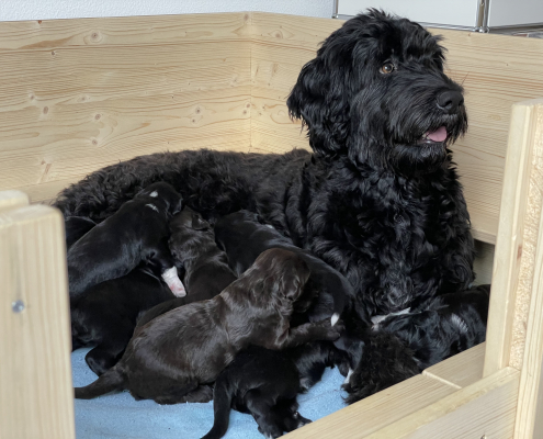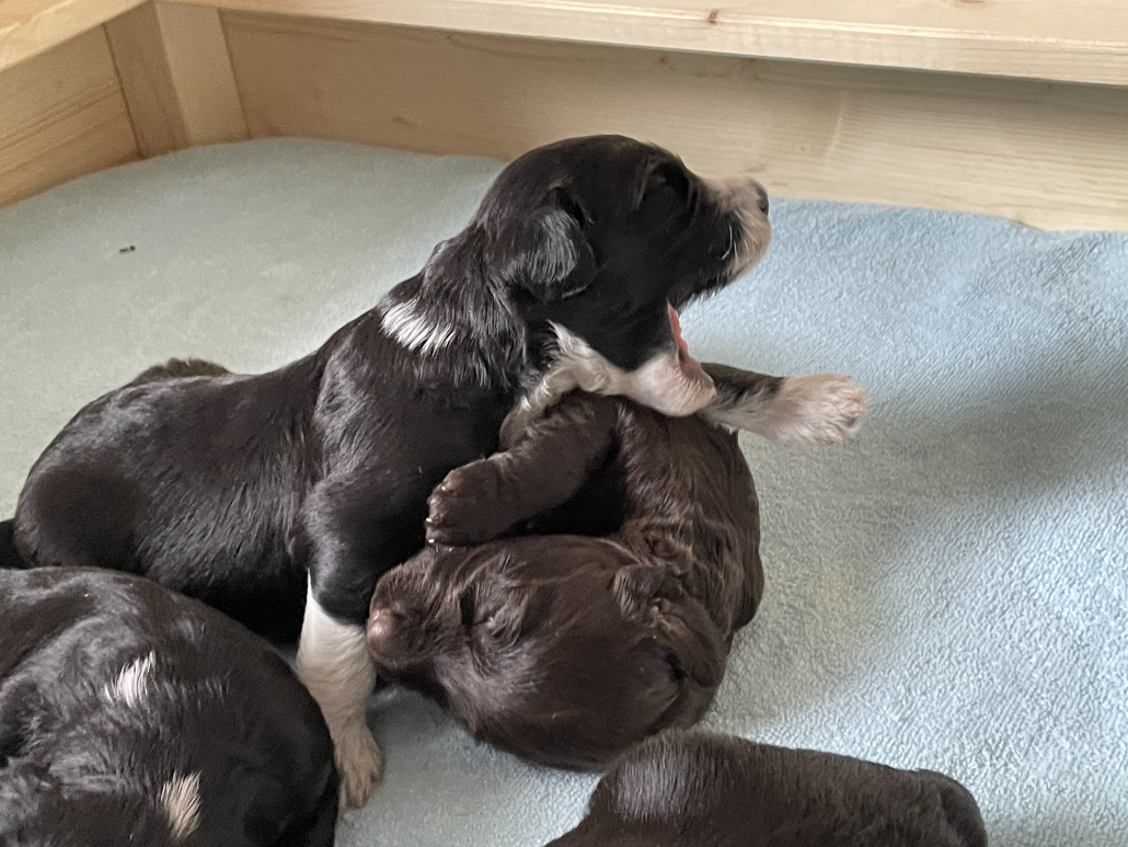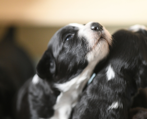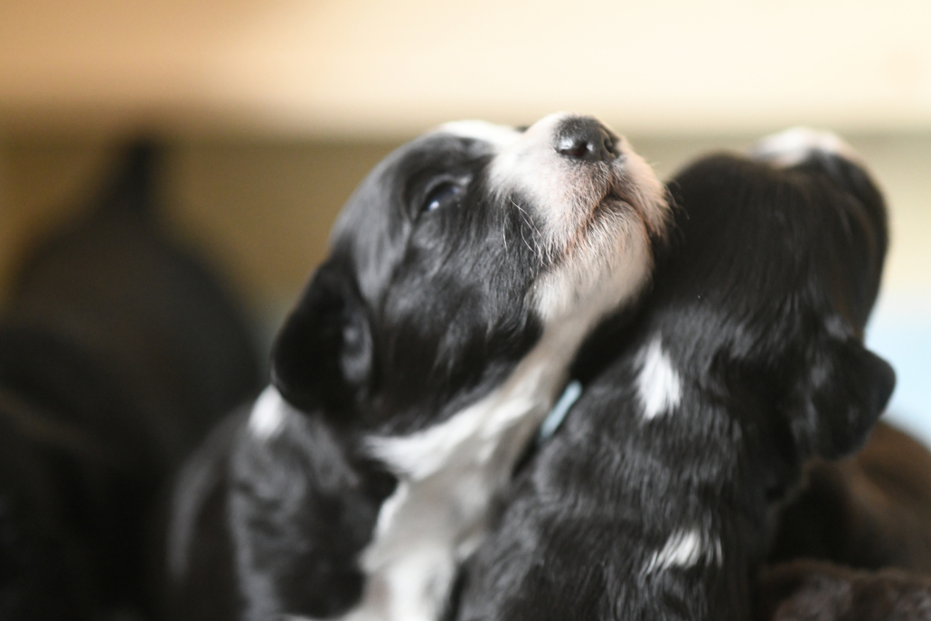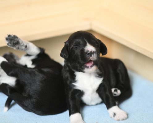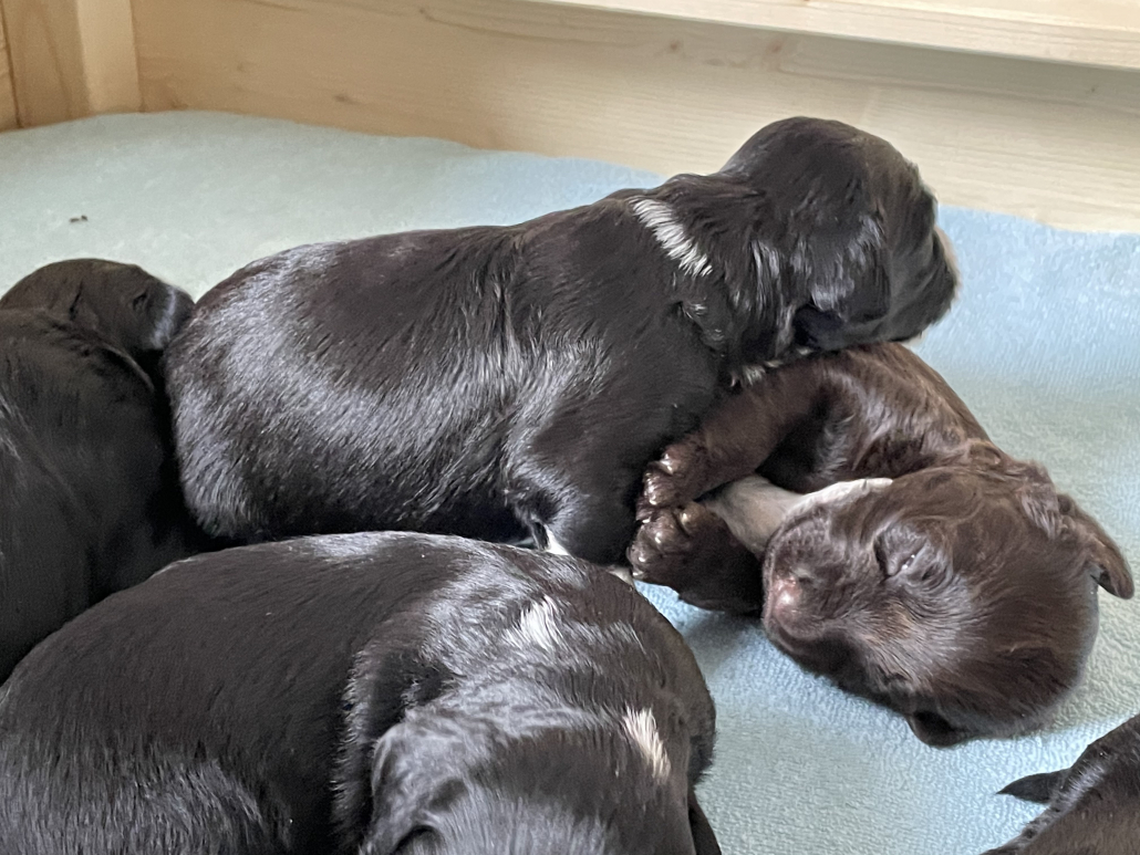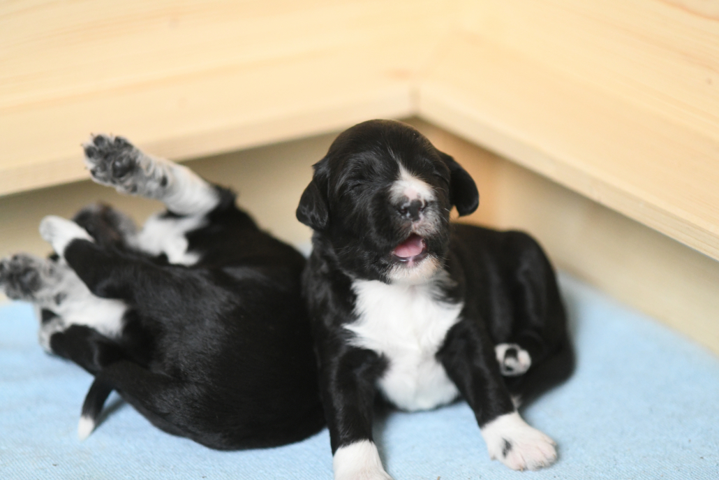 Das Laufen klappt schon immer besser, obwohl man es nach wie vor eher als ein Herumtorkeln bezeichnen muss. Die Augen sind auch schon relativ weit auf, die Augenfarbe kann man aber noch nicht erkennen, es schaut alles noch etwas trüb aus – wie wahrscheinlich auch deren Blick auf uns.