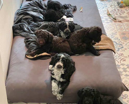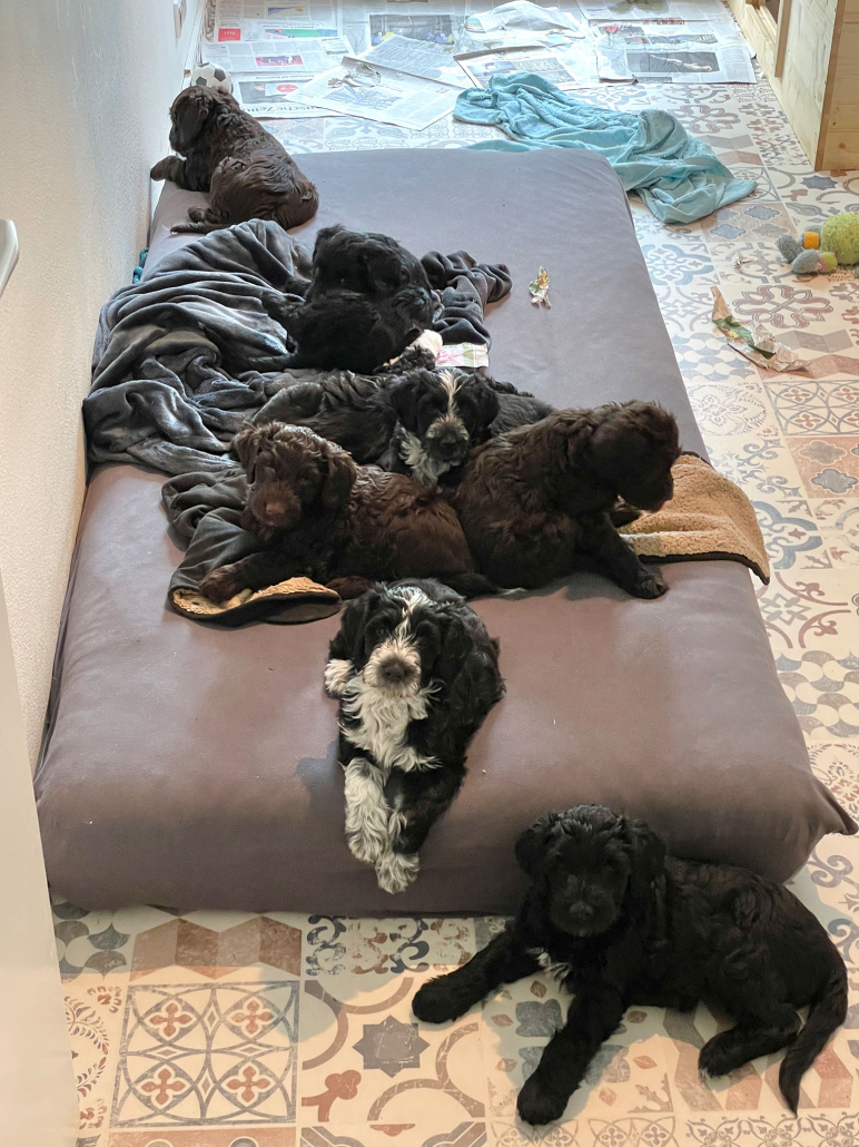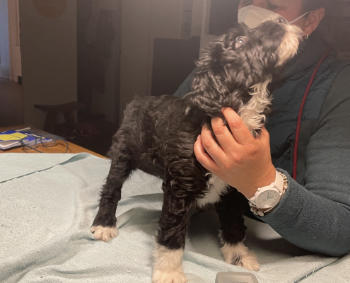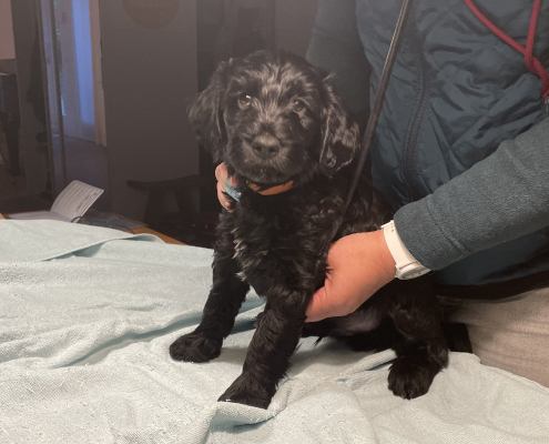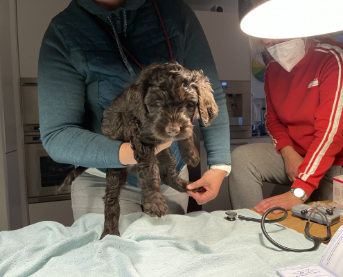 Gestern war es so weit, die Welpen wurden nochmal untersucht, dann geimpft und gechipt. Zum Glück kam die Tierärztin wieder zu uns nach Hause! Die Kleinen haben die Sache bestens vertragen, sind fit und wuselig wie immer!
