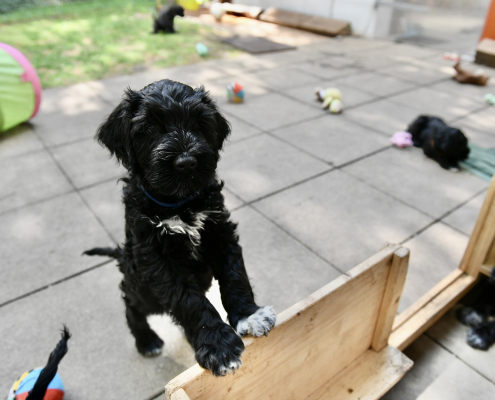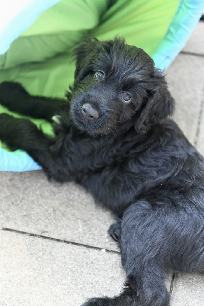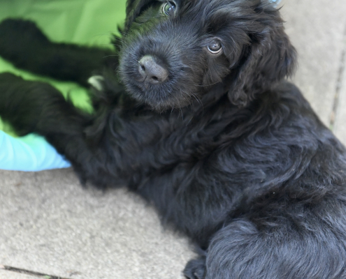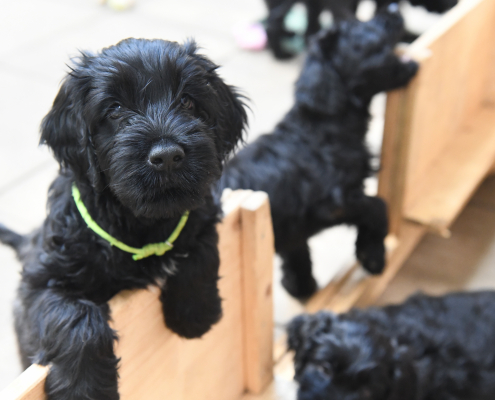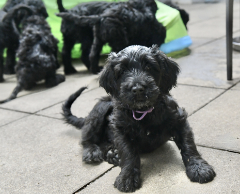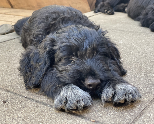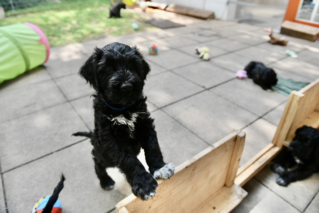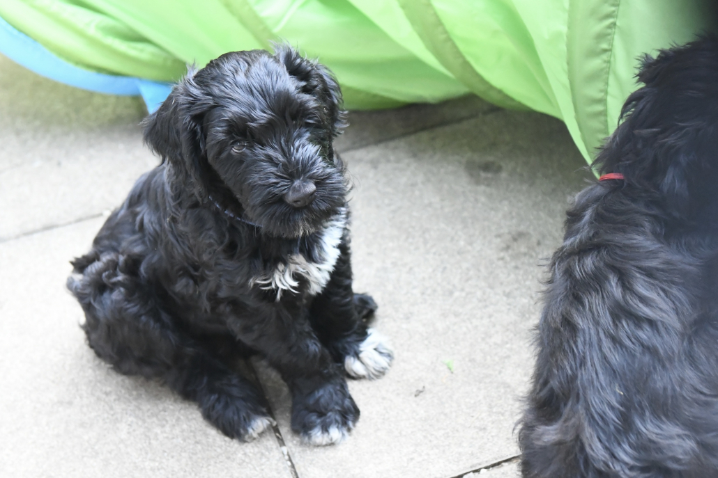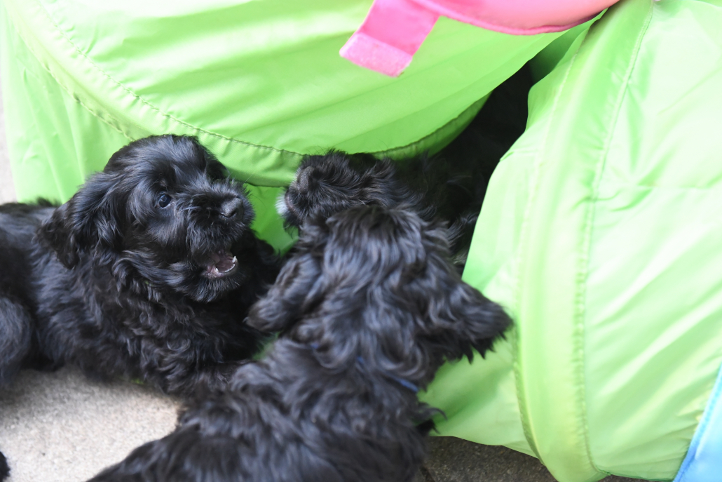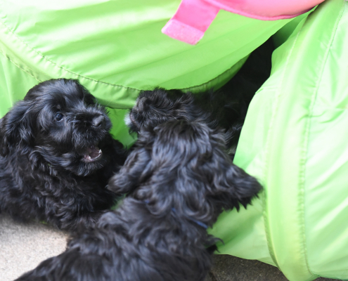 Das Auspacken des Spieltunnels war natürlich der Hit! Neugierig wird er von innen und außen erkundet, das Durchlaufen bereitet gar keine Furcht. Ein herrliches Schauspiel da zu zusehen! Das Ganze ist schon über eine Woche her, ich kam nur nicht zum Verarbeiten des Filmmaterials und zum Schreiben, denn das Ende der Welpenzeit bei uns naht unausweichlich. Vor ein paar Tagen war auch die Tierärztin da und hat alle untersucht, geimpft und den Chip implantiert, somit haben alle jetzt auch einen EU-Heimtierausweis! Es ist wirklich kaum zu fassen, dass jetzt schon die Zeit der Abgabe kommt. Vor 2 Tagen mussten wir uns schon von unserer ersten Hündin trennen. Sissi heißt jetzt Ida und wohnt in Hannover! Die Fahrt dorthin hat sie sehr entspannt gemeistert und lebt sich schon wunderbar ein. Es ist aber auch ein tolles neues Heim, in der sie mit Liebe überschüttet wird (nur Henry, ihr Cockapoo, muss sich wohl noch ein wenig an die neue Hundegesellschaft gewöhnen 😉 ….