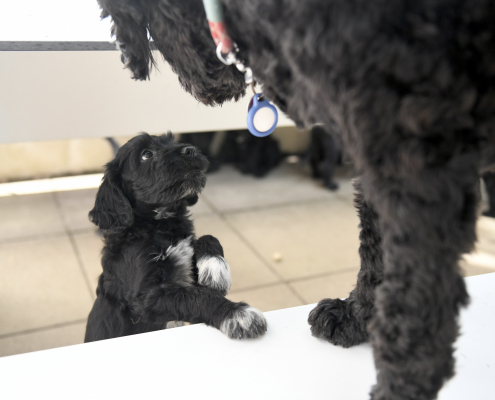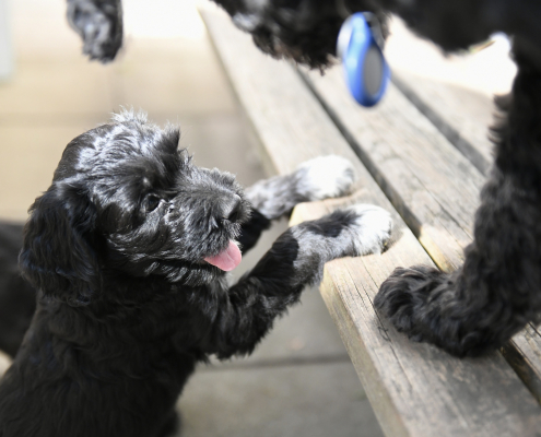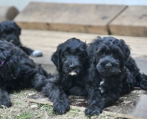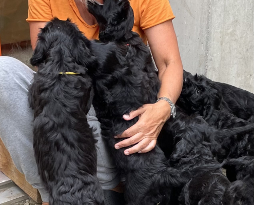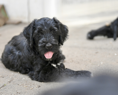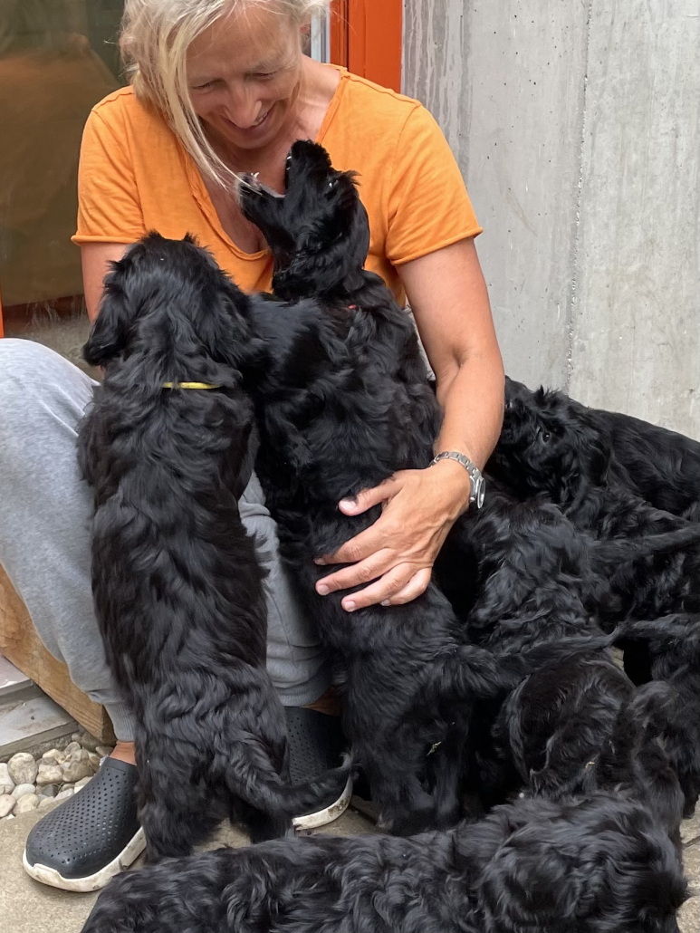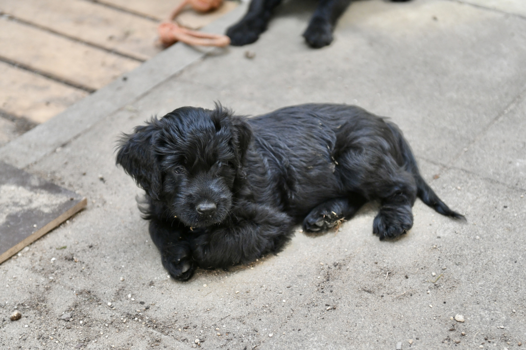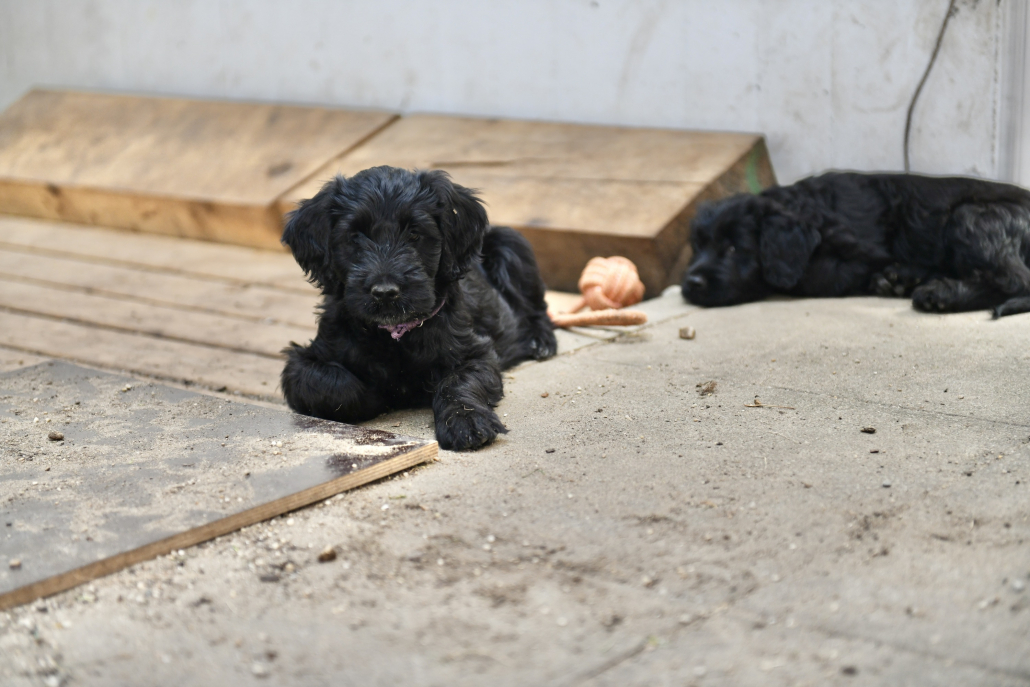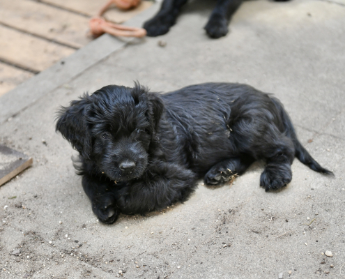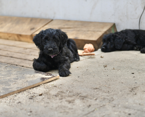 Der Aktivitätslevel steigt – und somit auch die nicht immer geplanten Umgestaltungsaktionen im Garten. Denn wenn 11 Arbeiter erstmal loslegen kommt man kaum hinterher. Die ursprüngliche Wiese gleicht zunehmend eher einem Acker, zumindest weicht die Farbe grün immer mehr der Farbe braun / beige – verstärkt natürlich auch durch die Geschäfte von 11 immer größer werdenden Welpen, bei deren Entfernung auch oft auch noch einige verbleibende Grasbüschel daran glauben müssen. Aber was soll’s, auch Kinder lieben es im Dreck zu spielen, da sind diese kleinen Racker nicht anders. Und so süß, wenn man ein gebudeltes Loch mit einem Brett zudeckt und sie die Welt nicht mehr verstehen wo denn das Loch plötzlich hin verschwunden ist. Naja, daneben kann man ja auch noch buddeln….